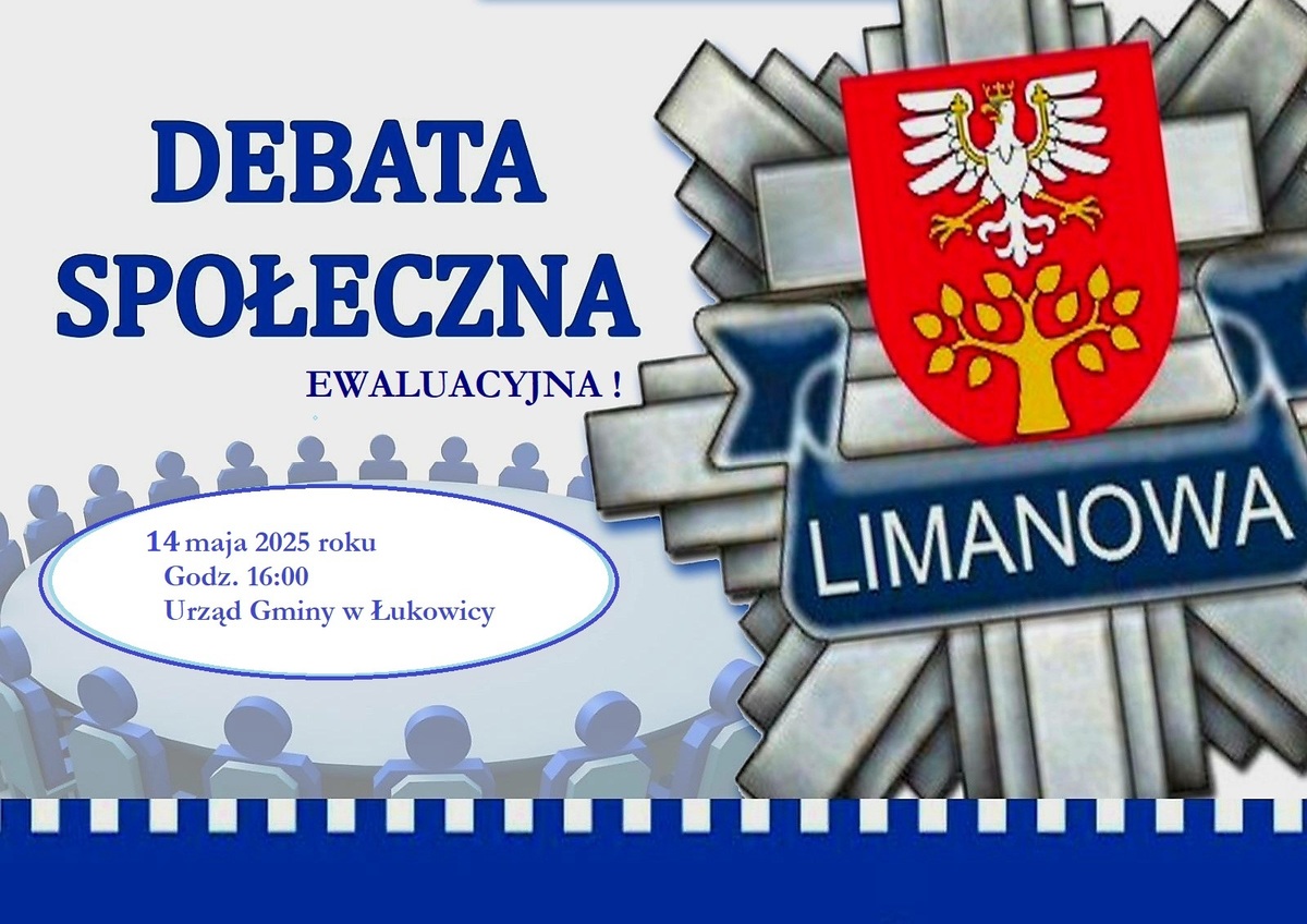 Serdecznie zapraszamy na debatę ewaluacyjną, która odbędzie się w dniu 14 maja 2025 roku o godz. 16:00 w sali konferencyjnej Urzędu Gminy Łukowica.