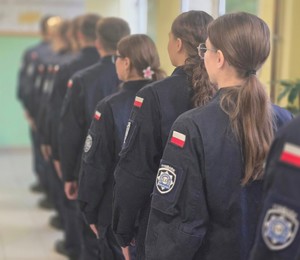 Uczniowie z dużym zaangażowaniem uczestniczyli w ćwiczeniach, ucząc się prawidłowych postaw, zwrotów oraz elementów poruszania się w szyku. Była to cenna lekcja, dzięki której młodzież mogła poczuć namiastkę prawdziwego policyjnego szkolenia i sprawdzić, jak wymagająca, ale i satysfakcjonująca potrafi być nauka dyscypliny mundurowej.